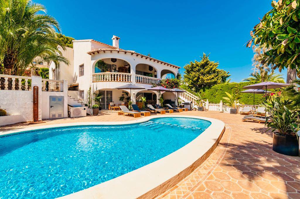 Suryodaya is a luxury, versatile, split level 5 bedroom villa in Moraira, with a private, heated, saltwater pool. It is a much loved home and set in idyllic grounds in the highly desirable town of Moraira on the Costa Blanca in Spain. Moraira is known as the St Tropez of Northern Costa Blanca and has easy access from both Alicante and Valencia airports.